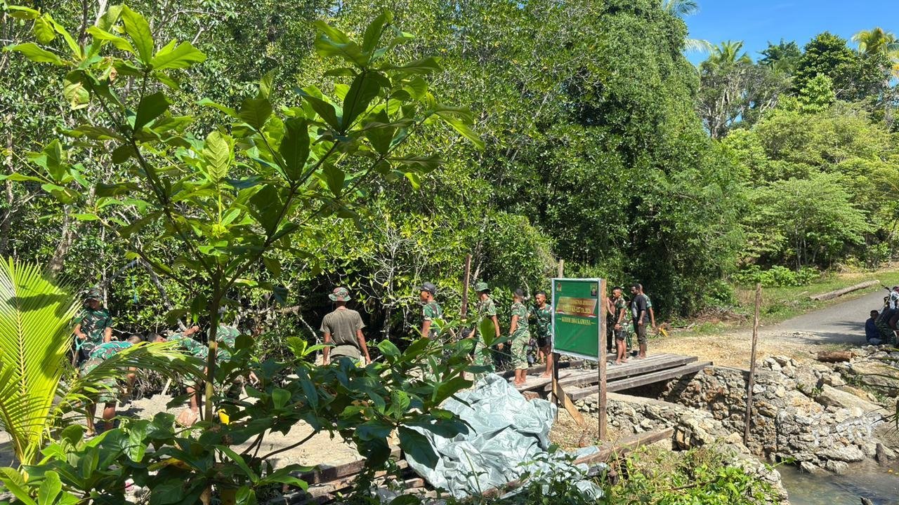 Dipimpin Wadan Satgas, Pembuatan Jembatan TMMD 127 Kodim 1804/Kaimana Libatkan TNI dan Warga
