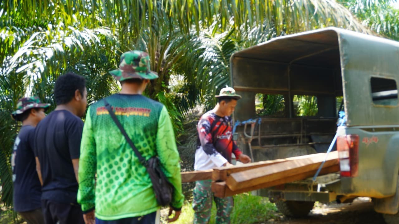 Kotawaringin Timur – Proses pembongkaran material kayu ulin untuk pembangunan jembatan TMMD ke-127 berlangsung lancar berkat kerja sama antara Satgas dan warga setempat, Rabu (04/03/2026).
