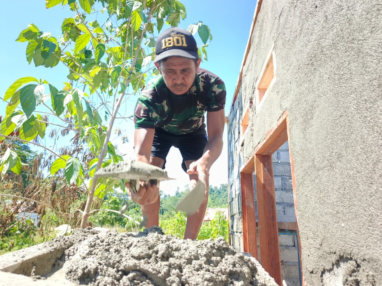 Manokwari Utara — Proses pembangunan Rumah Tidak Layak Huni (RTLH) dalam rangka TMMD ke-128 Kodim 1801/Manokwari terus mengalami kemajuan yang pesat. Salah satu rumah yang dibangun di Kampung Tanah Rubuh kini telah mencapai tahap plester dinding yang dilakukan pada Selasa (28/04/2026).