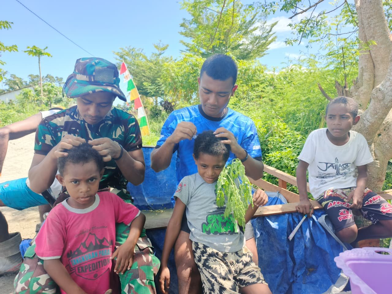 Mimika — Dalam rangka program TMMD ke-128 Kodim 1710/Mimika, proses pembukaan lahan di Kampung Keakwa dilakukan dengan semangat kerjasama antara anggota Satgas dan masyarakat lokal.