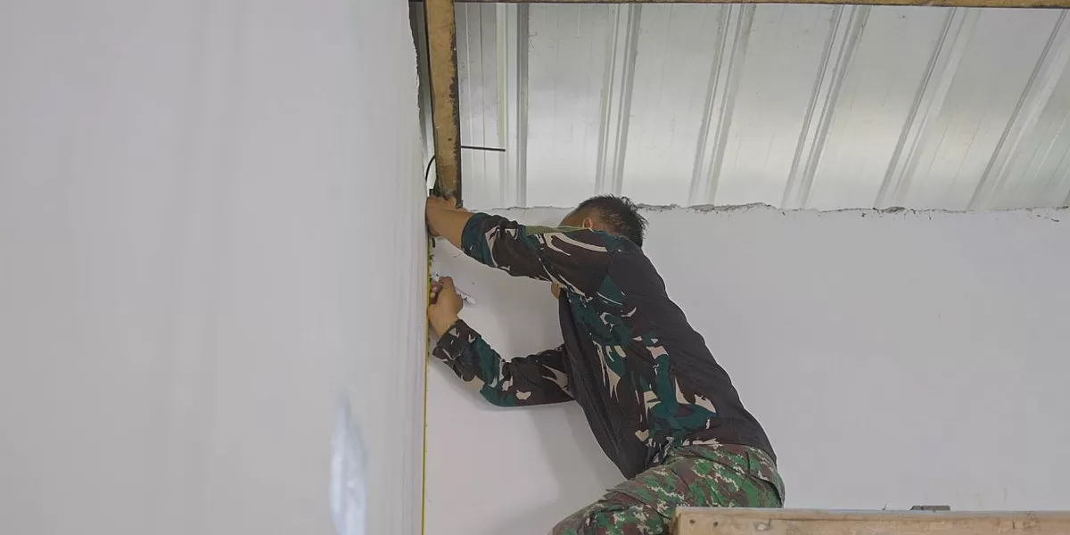Di bawah sinar matahari yang terik, Fran bekerja sama dengan anggota Satgas untuk memasang batu tela sebagai bagian dari dinding rumah. Antusiasmenya terbukti tidak pudar meskipun pekerjaan ini menuntut fisik yang cukup berat.