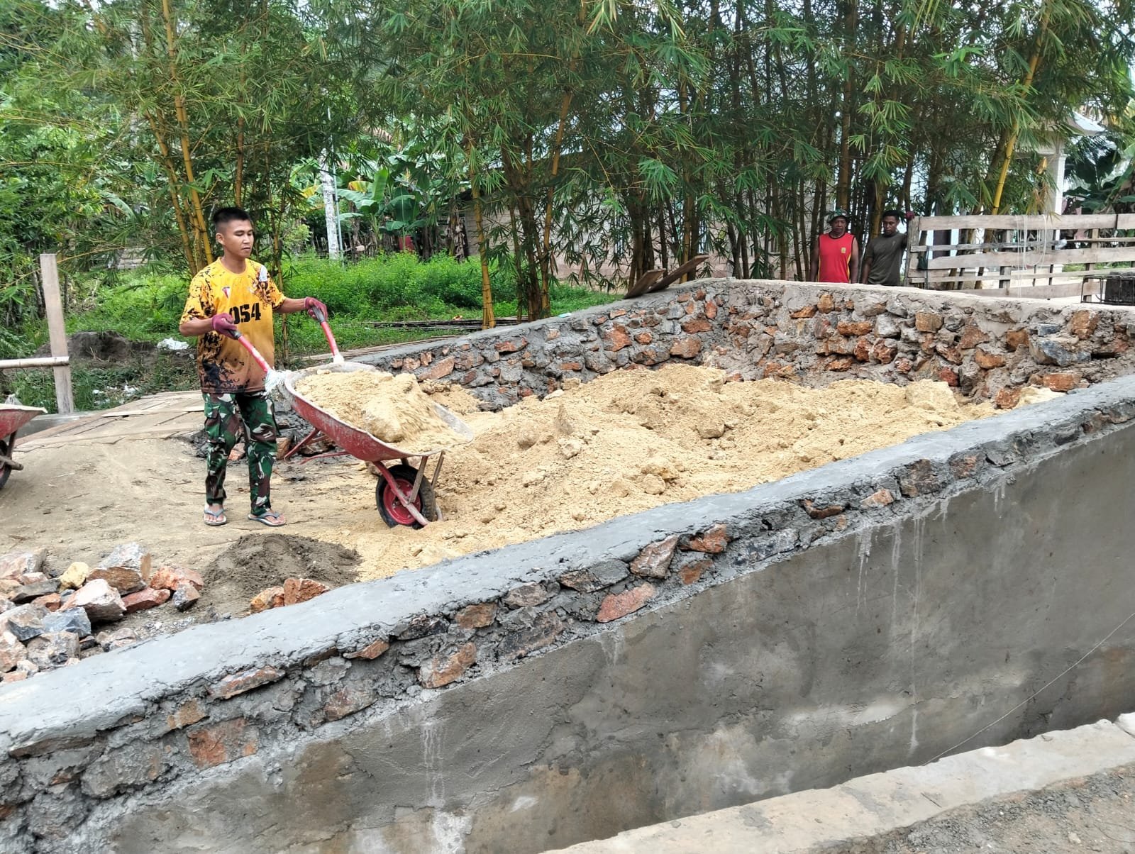 Keterlibatan masyarakat dalam membantu pekerjaan menunjukkan dukungan penuh terhadap program TMMD. Kebersamaan tersebut mempercepat pencapaian target yang telah direncanakan.