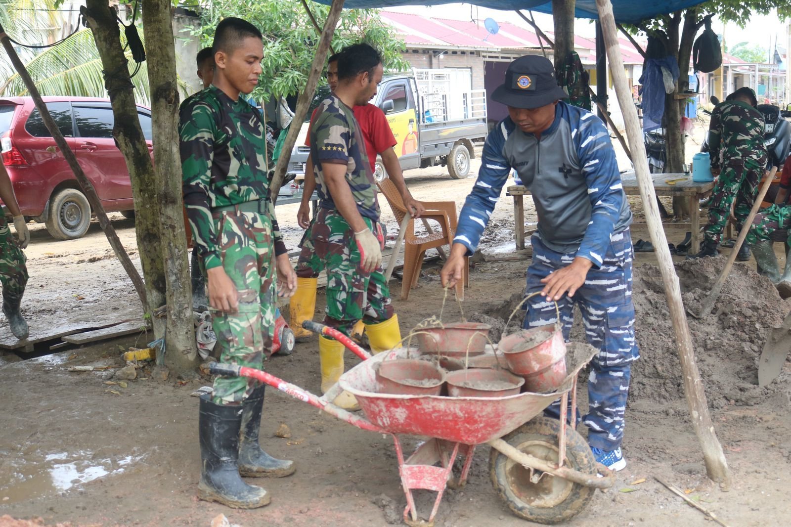 Pemasangan dilakukan oleh personel yang telah memahami teknis konstruksi baja ringan, dibantu oleh beberapa warga yang turut serta memberikan dukungan tenaga. Meskipun cuaca cukup terik, semangat tetap menyala demi mempercepat proses penyelesaian tempat ibadah tersebut.