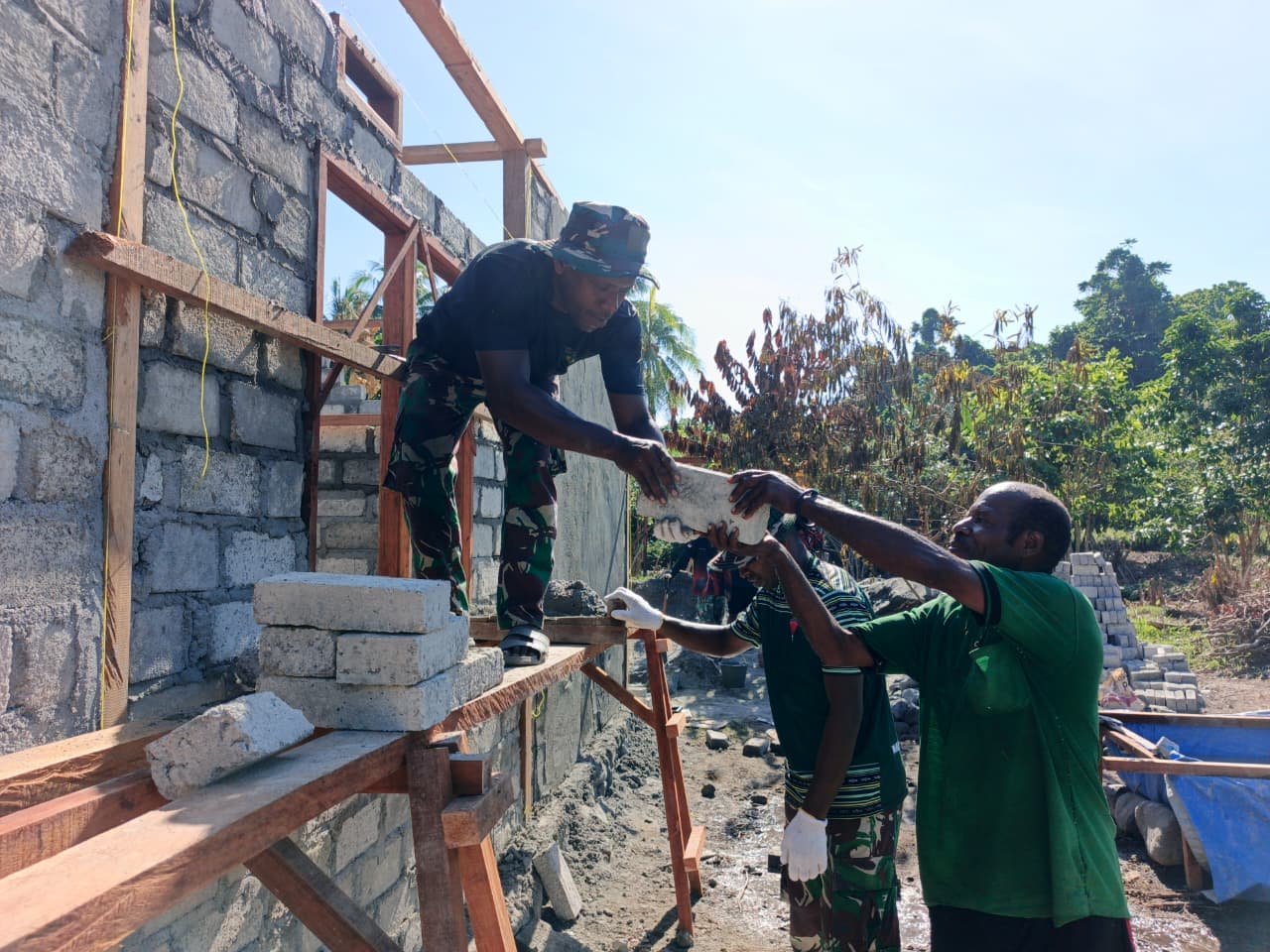 Manokwari Utara — Program TNI Manunggal Membangun Desa (TMMD) ke-128 yang dilaksanakan oleh Kodim 1801/Manokwari memberikan kontribusi positif bagi warga, khususnya dalam pembangunan rumah layak huni di Kampung Tanah Rubuh.