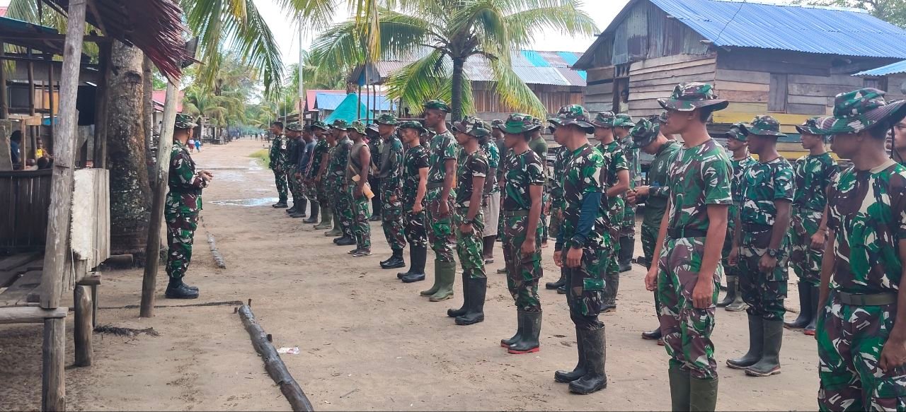 Mimika — Anggota Satgas TMMD ke-128 dari Kodim 1710/Mimika secara rutin mengadakan apel pagi sebelum memulai aktivitas mereka di lokasi proyek TMMD yang terletak di Kampung Keakwa, Distrik Mimika Tengah, pada Rabu (29/4/2026).