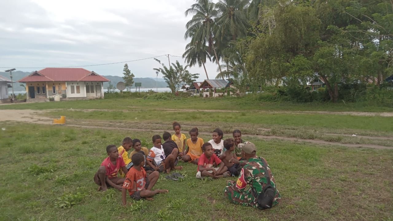 Di tengah kebersamaan itu, Sertu Daniel Ndiken menyempatkan diri memberikan wawasan kebangsaan kepada anak-anak. Ia menanamkan nilai-nilai cinta tanah air, pentingnya menjaga persatuan, serta semangat untuk terus belajar demi meraih cita-cita.