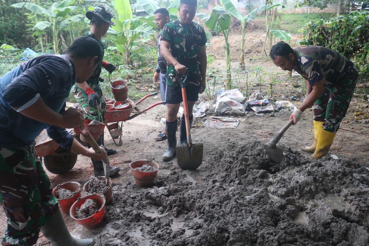 Warga Desa Talio tampak antusias ikut membantu dalam proses pengecoran, mulai dari mengangkut bahan, meratakan beton, hingga menyediakan konsumsi bagi para personel Satgas. Semangat gotong royong menjadi kunci kelancaran kegiatan ini.