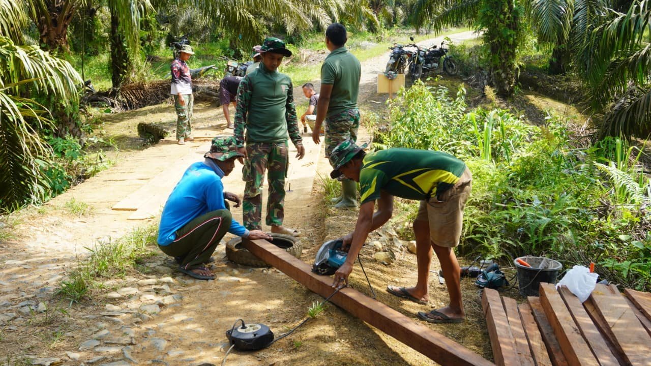 Pengerjaan jembatan ini dilakukan secara gotong royong antara anggota Satgas TMMD dan masyarakat sekitar. Kolaborasi ini memperlihatkan sinergi TNI-Rakyat dalam membangun fasilitas yang sangat dibutuhkan warga.