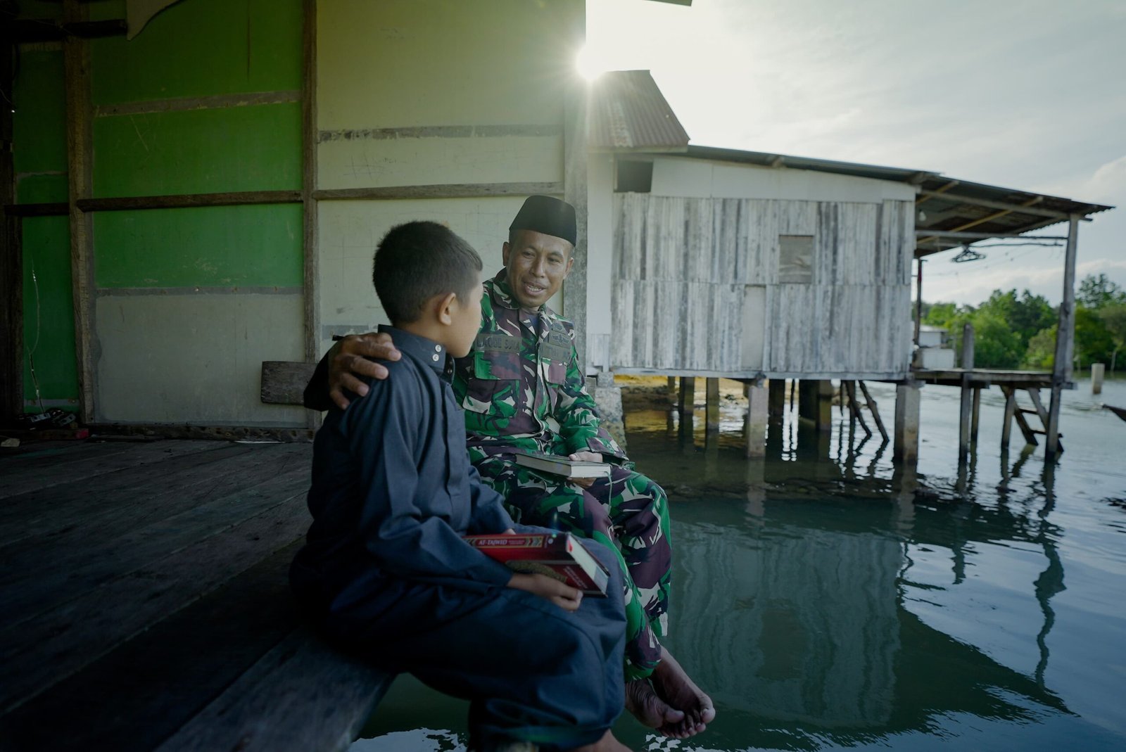 Di tengah kesibukan membangun infrastruktur, prajurit TNI meluangkan waktu untuk mengajarkan bacaan Al-Qur’an kepada anak-anak setempat. Kegiatan ini menjadi bagian dari upaya membentuk karakter dan moral generasi muda.