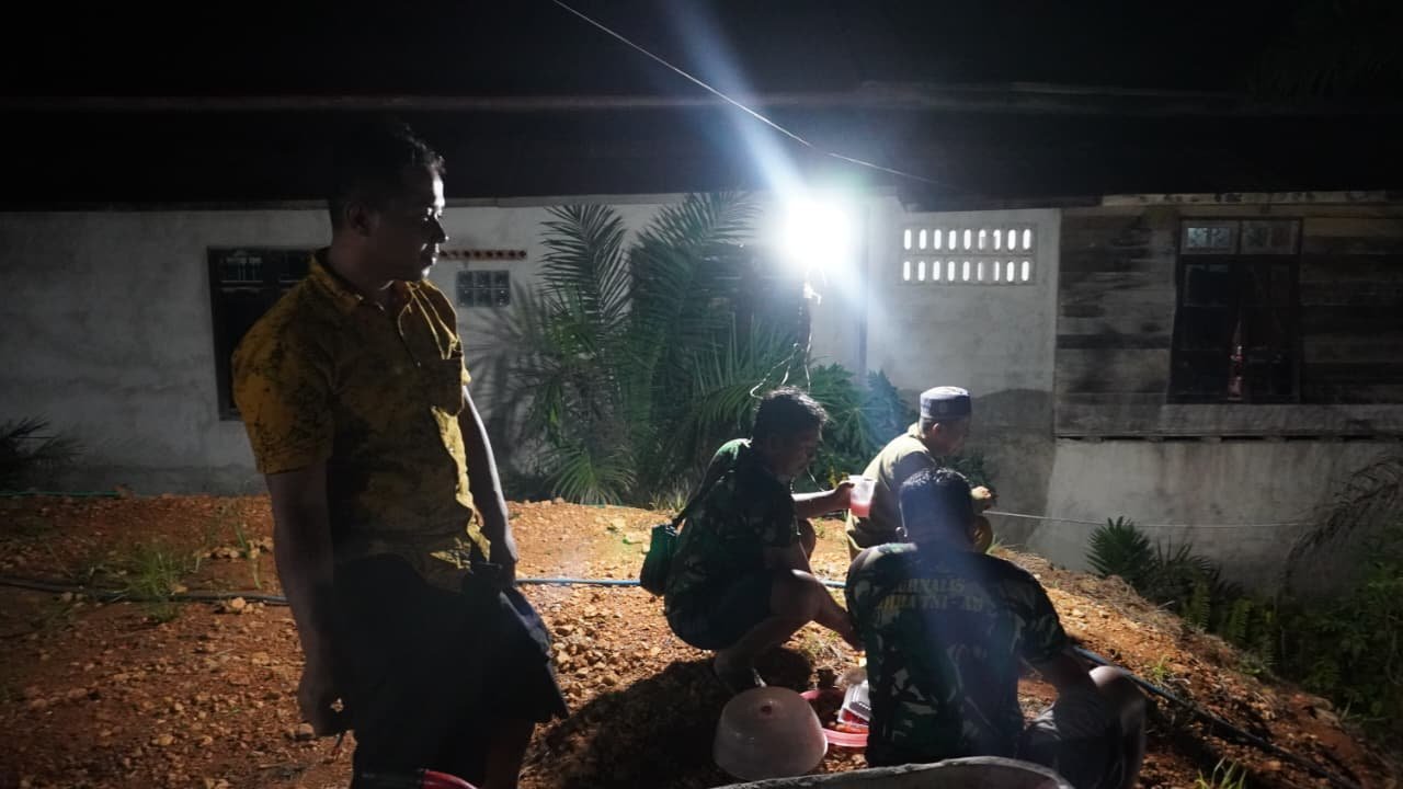 Kotawaringin Timur – Kedekatan antara anggota Satgas TMMD Reguler ke-127 Kodim 1015/Sampit dengan masyarakat terlihat jelas selama pelaksanaan kegiatan pembangunan di Desa Tri Buana, Kecamatan Telaga Antang, Sabtu malam (07/03/2026).