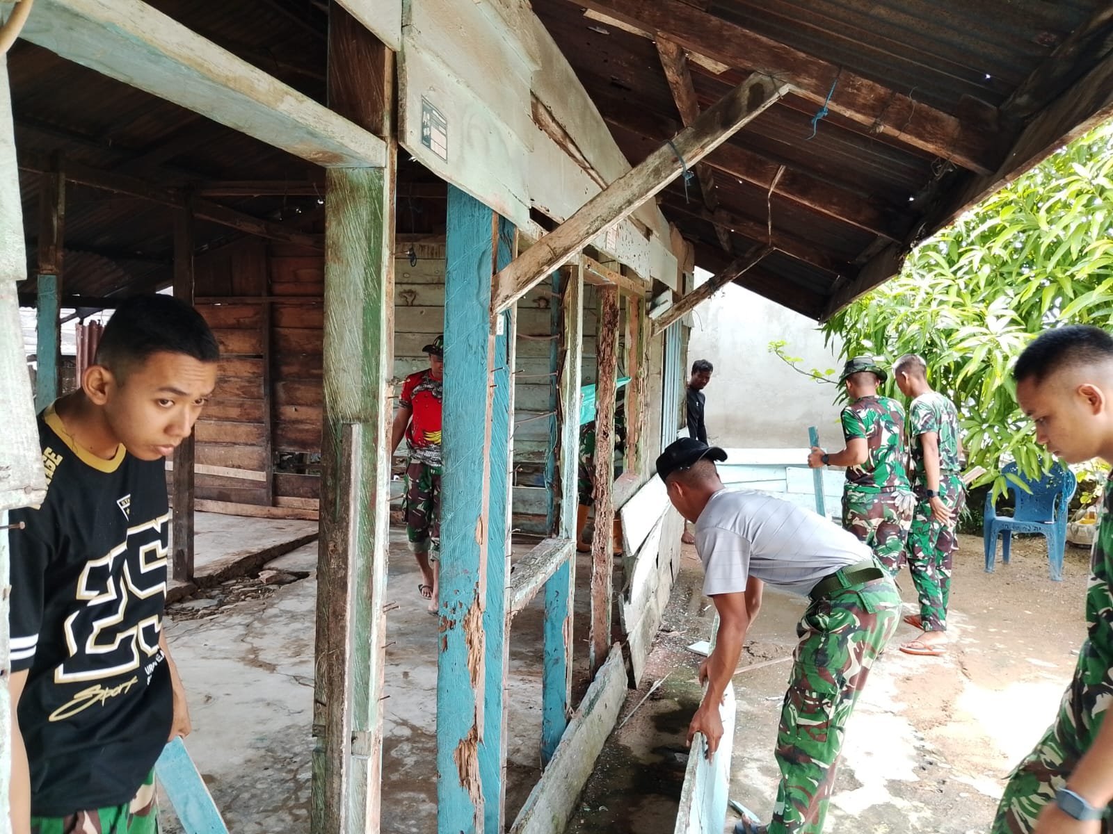 Kegiatan tersebut merupakan bagian dari upaya TNI dalam membantu masyarakat kurang mampu agar memiliki hunian yang lebih layak, sehat, dan aman. Proses pembongkaran dilakukan secara gotong royong oleh personel Satgas TMMD bersama warga sekitar yang turut memberikan dukungan tenaga.